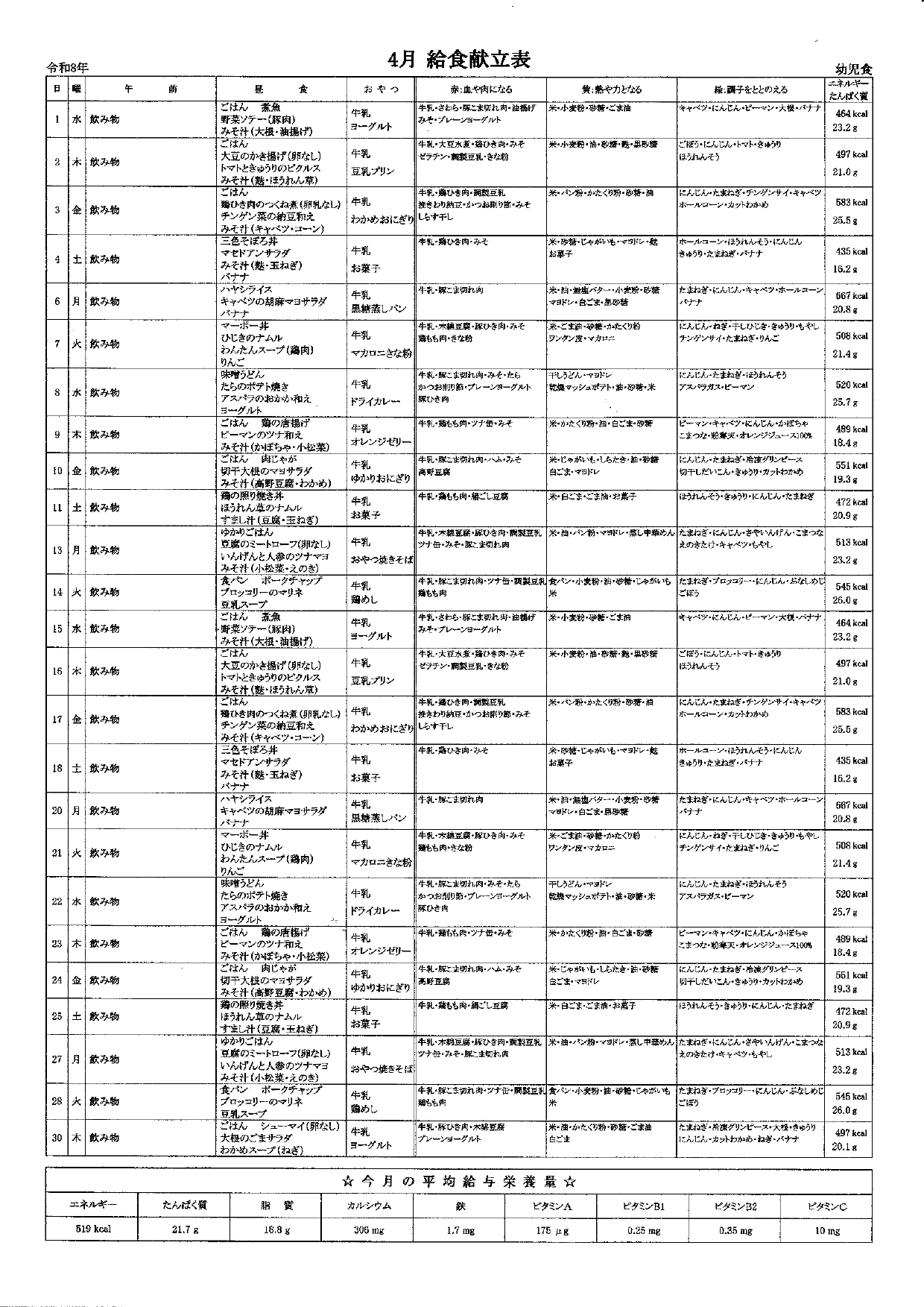 献立表
