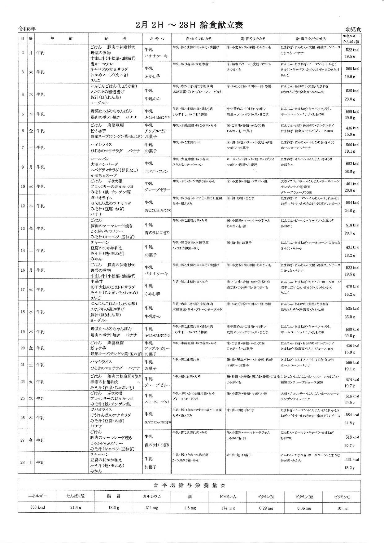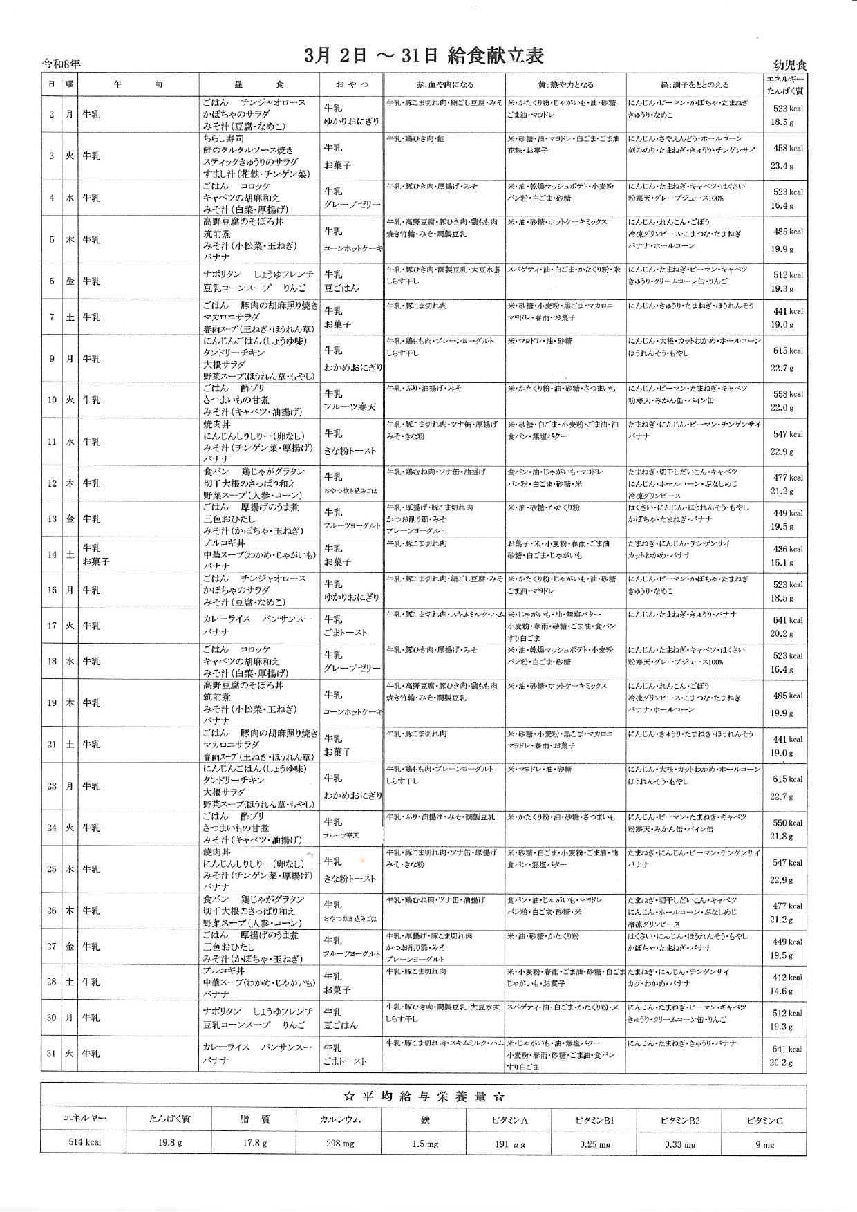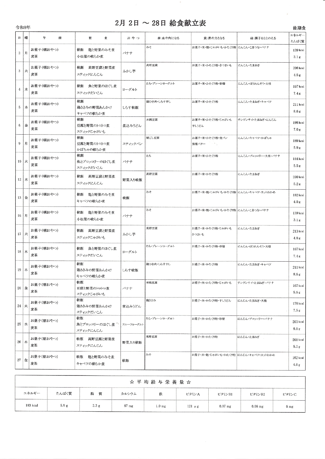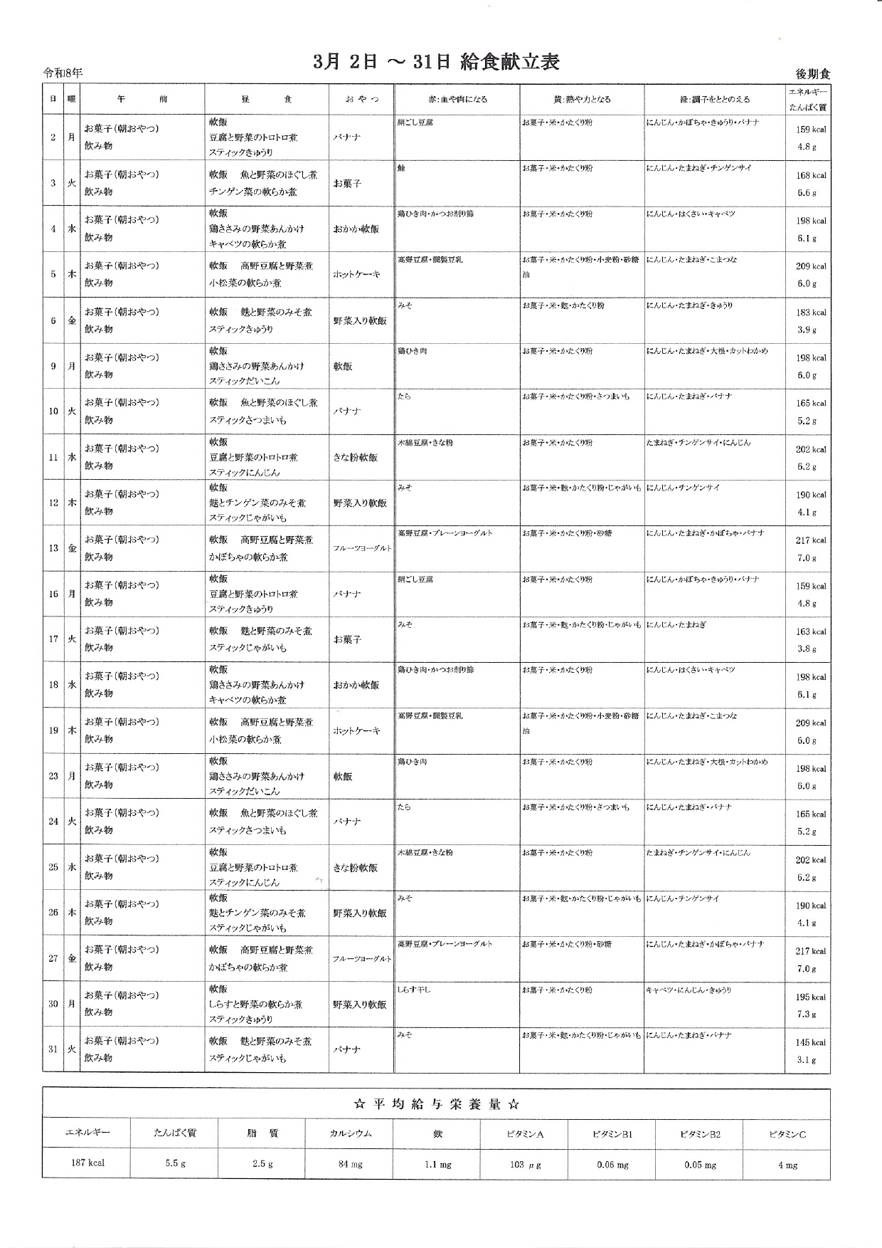 献立表